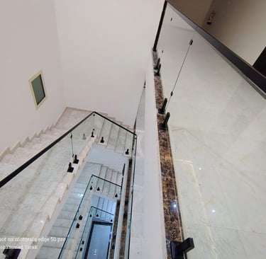تنوع كبير في الأشكال والألوان حيث يتوفر درابزين الزجاج بخيارات متعددة تشمل الشفاف والمصنفر والملون مما يسمح لك بتخصيص التصميم حسب ذوقك وديكور منزلك