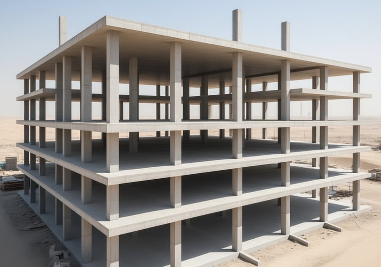 تنفيذ الهيكل الكامل (أعمدة، كمرات، بلاطات)